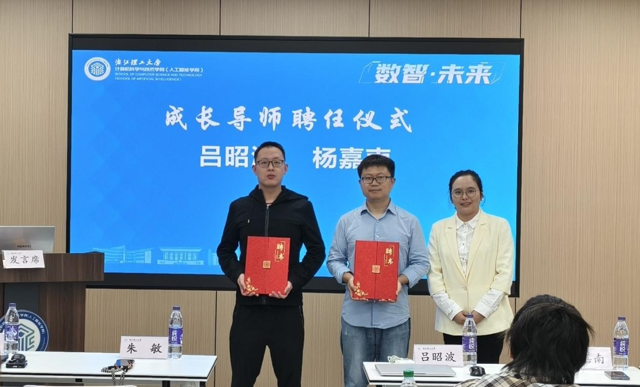 现场还举行了“成长导师聘任仪式”。学院副院长林望、潜睿睿为企业代表韩兴坤、青年教师代表相东明、朋辈导师代表张涛、宋心奕颁发聘书。