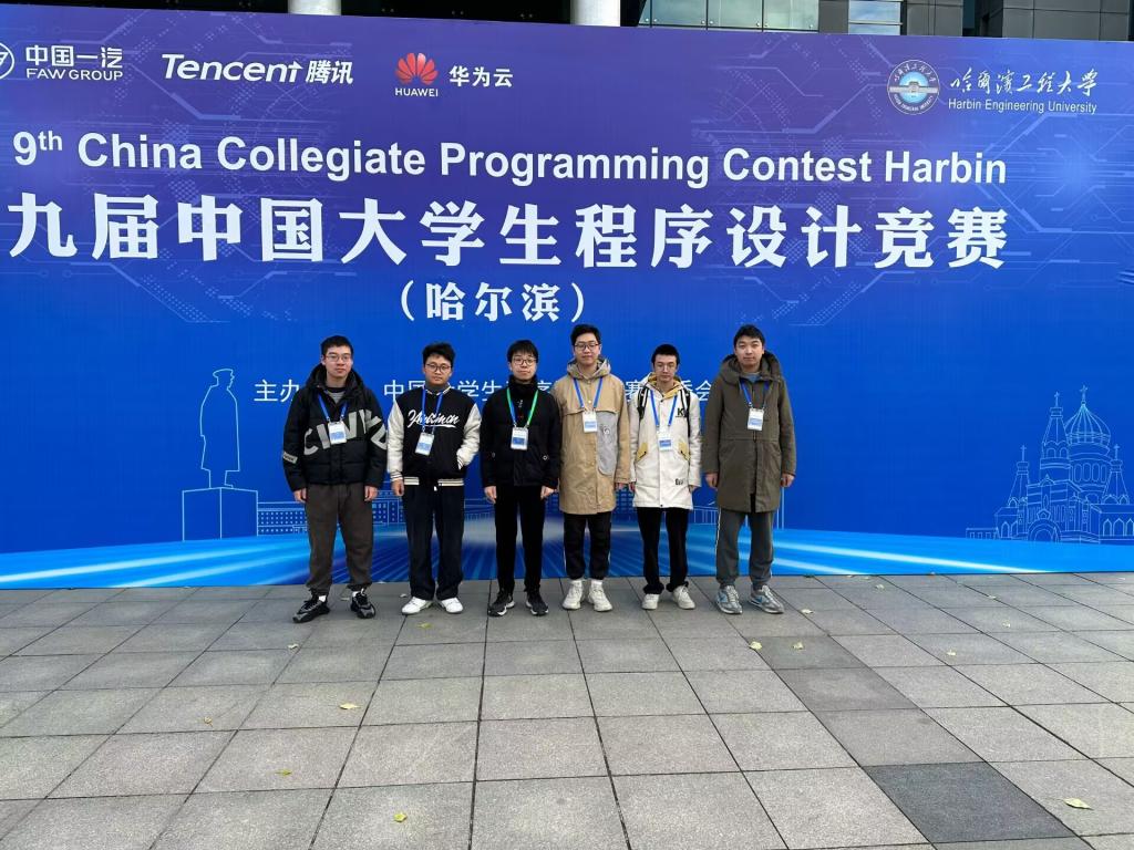 2023年11月4日至5日,第九届中国大学生程序设计竞赛(哈尔滨)在哈尔滨工程大学举行。代表球王会体育官方网站参加本次比赛的一支队伍由2020级计算机科学与技术专业的本科生朱鑫鑫、薛淞尹、徐波组成。他们经过网络选拔赛、省赛的激烈角逐,从全国500多所高校的3500多支队伍中脱颖而出、顺利入围,经过五个小时的激烈角逐,最终获得了金奖。